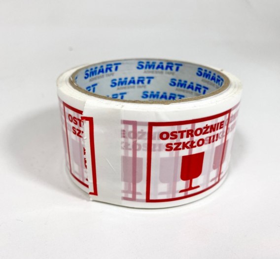 Taśma pakowa z nadrukiem OSTROŻNIE SZKŁO 48x50 SMART