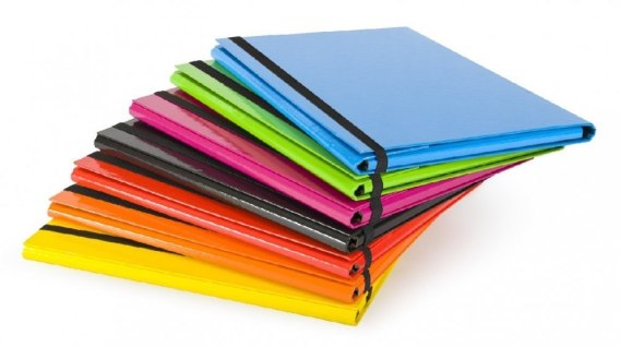 Wykonana z twardej 2mm tektury powleczonej folią PP. Posiada czarną wyklejkę z wysokiej jakości surowca. Zamykana na gumkę. Szerokość grzbietu do 20 mm. Innowacyjna gama kolorystyczna.