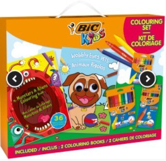 • Zestaw kreatywny BIC z kolorowanką 512023/92611 (12 flamastrów + 12 kredek świecowych + 12 kredek ołówkowych + 2 kolorowanki)